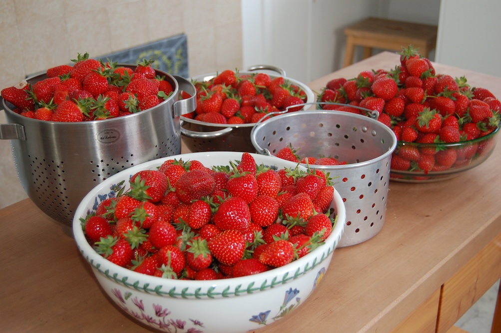I have always had an insatiable appetite for strawberries. At some point as a kid, I took over my mother’s strawberry patch—weeding, picking, selling, and eating large quantities of berries every spring. Here at Crazy Corner Farm, I also have a large strawberry patch. The original idea was that strawberries would be my cash crop—I’d sell lots of berries and support my gardening habit that way. It worked fine for a while…until I realised that, actually, we could consume every one of our berries without any problem at all, even when I was bringing in several kilograms every two days. I still sell some, and I give away plenty (they make spectacular Christmas gifts—who doesn’t want a punnet of strawberries?), but mostly we eat them.