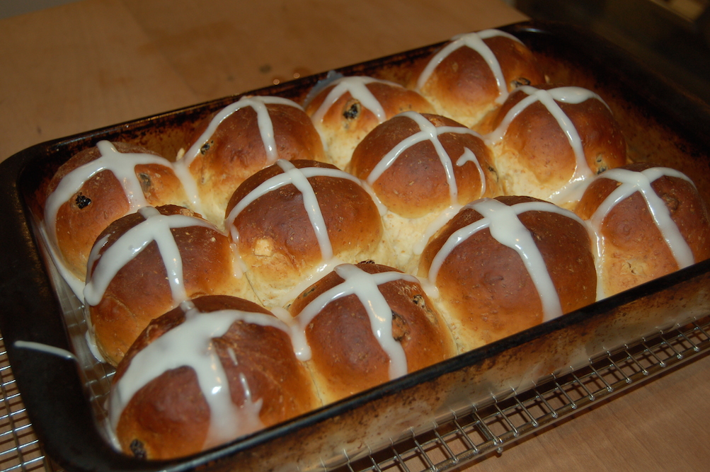 I know it’s not fashionable to appreciate gluten these days, but our household thrives on bread. No holiday celebration is complete without at least one bread. Holidays are an excuse to bake something different, something extravagant. Today rated two special breads. I made hot cross buns for breakfast, and Ian made a challah the size of a toddler, which we enjoyed with home made goat cheddar for lunch.