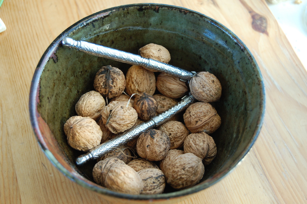 When we were given a large quantity of walnuts in their shells, I wondered if we would manage to eat them all—our damp winters can cause walnuts in the shell to mould. I spread them out on a drying screen for a few days, to make sure they were fully dry before bagging them.