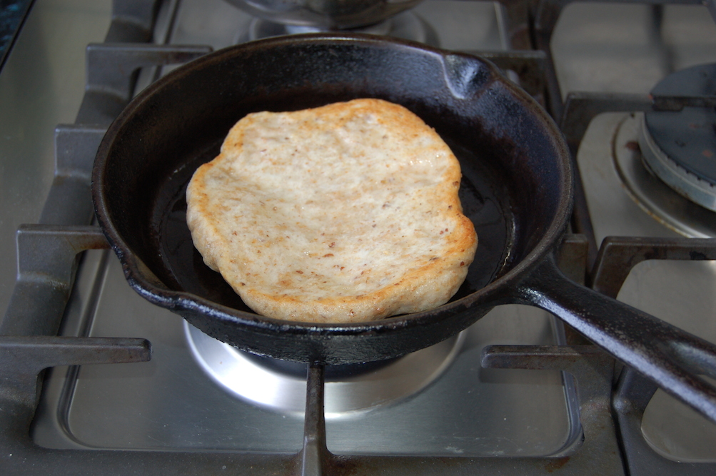 Take that extra dough, pat and pull it into a flattish, roundish sort of shape, and slap it into half an inch of hot oil until it’s brown and crispy on both sides. Shake a little salt onto it, and you’ve got a snack that reminds me of rodeos and terrifyingly decrepit carnival rides.