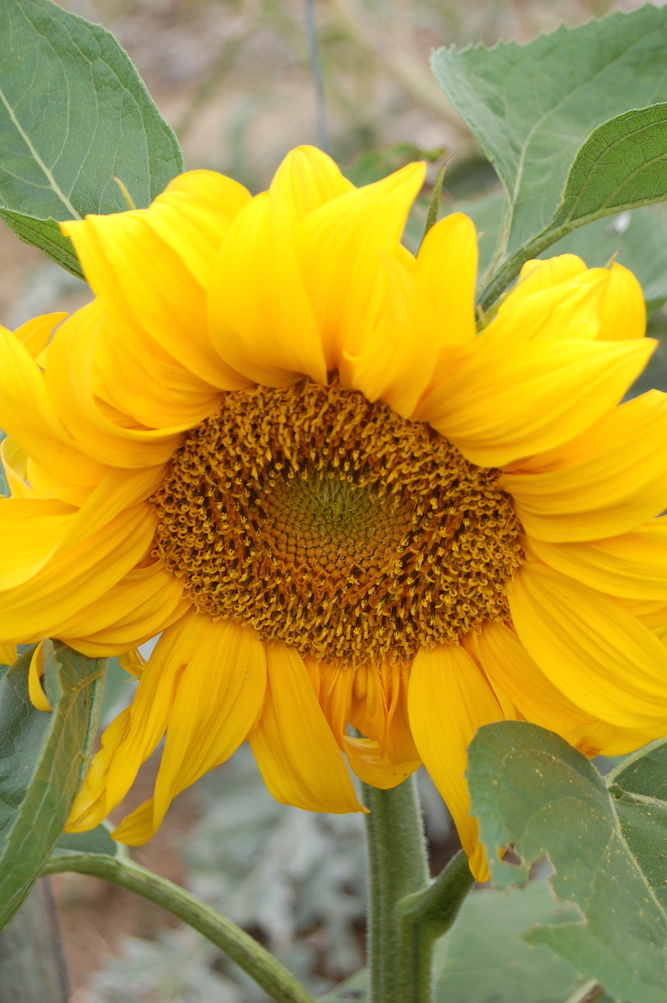 Many vegetable plants are attractive. Many have pretty flowers—okra (a hibiscus), scarlet runners, peas. None is more showy than the sunflower. Indeed, sunflowers are in the ornamentals section of the seed catalogue, not the vegetable section. There are plenty of sunflowers that don’t produce big meaty seeds for eating, but those that do are no less ornamental.