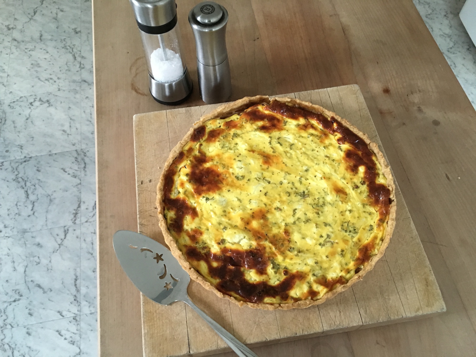 There are dozens of variations on this tart available on the Internet. Here’s my version. This is best served at room temperature, outdoors on a hot day with a glass of white wine.