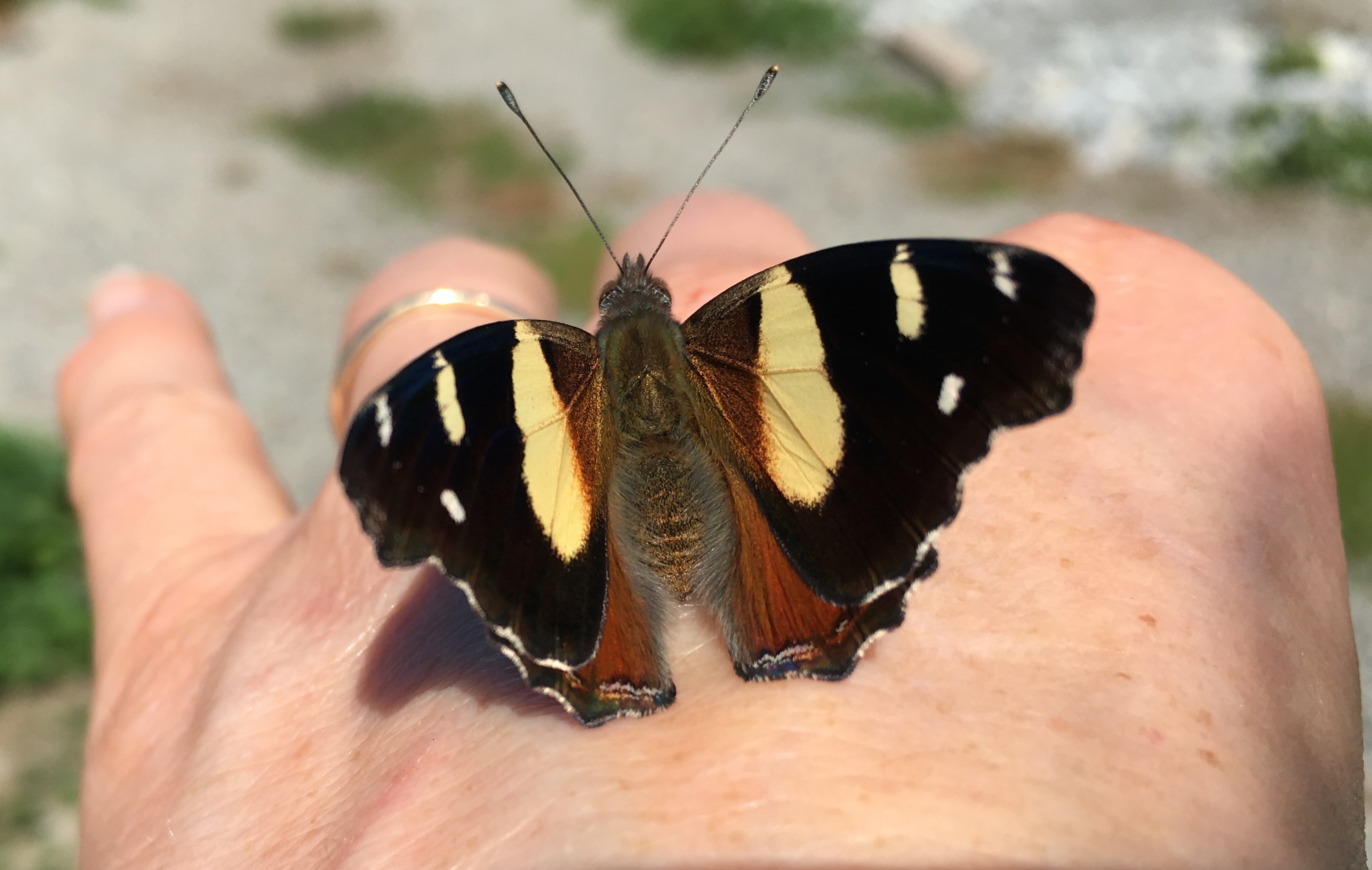 But when this gorgeous ornament (a yellow admiral) landed on my hand today, I stopped what I was doing. I ignored my work for as long as it was content to stay there. This sort of jewellery, I’ll wear.