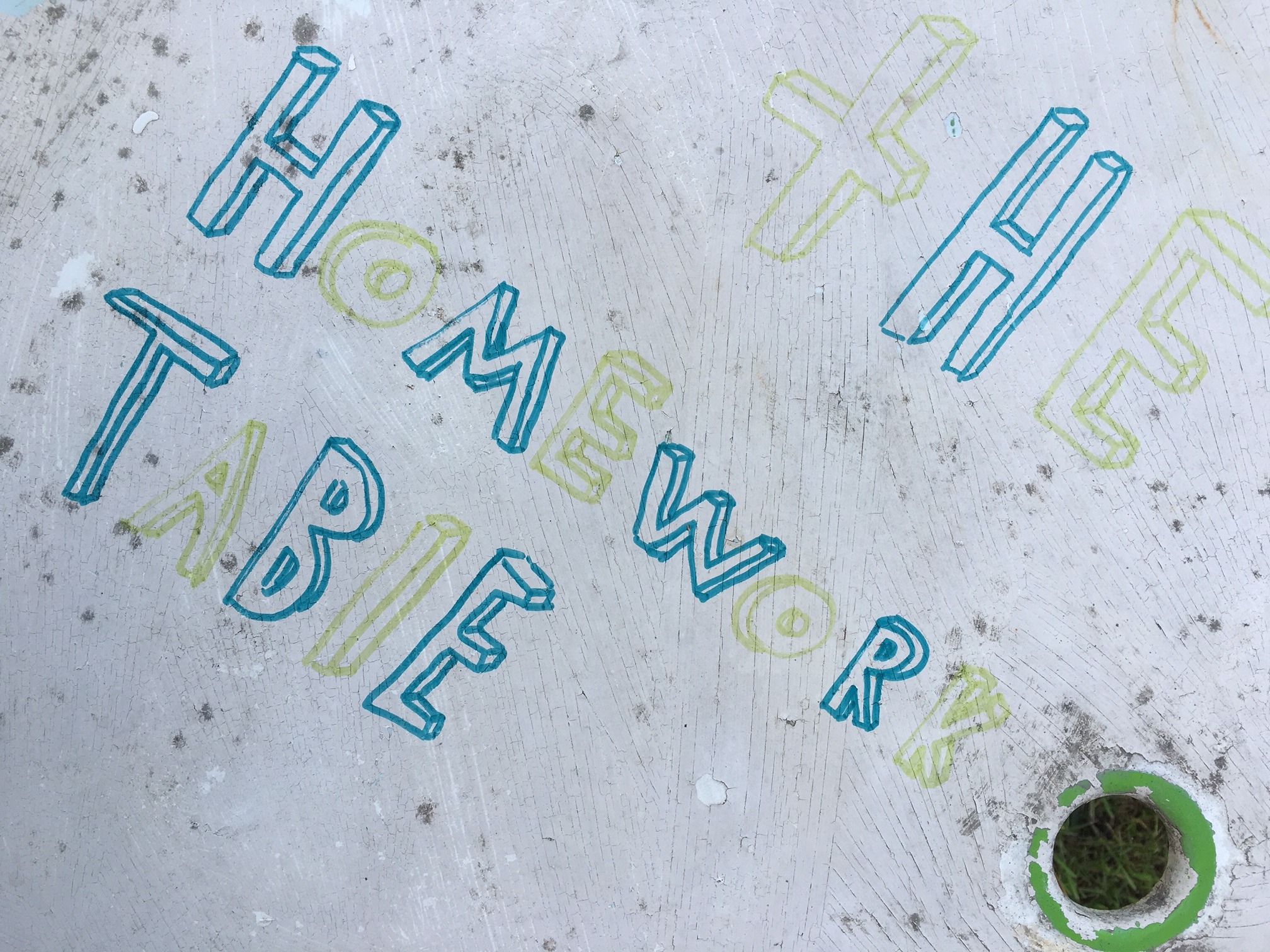 As it turned out, we had a table that fit the bill perfectly—an old picnic table that I’d recently banished from the shed because it was in the way. She scrubbed it up, dubbed it the homework table, and brought her desk chair outside to complete her homework.
