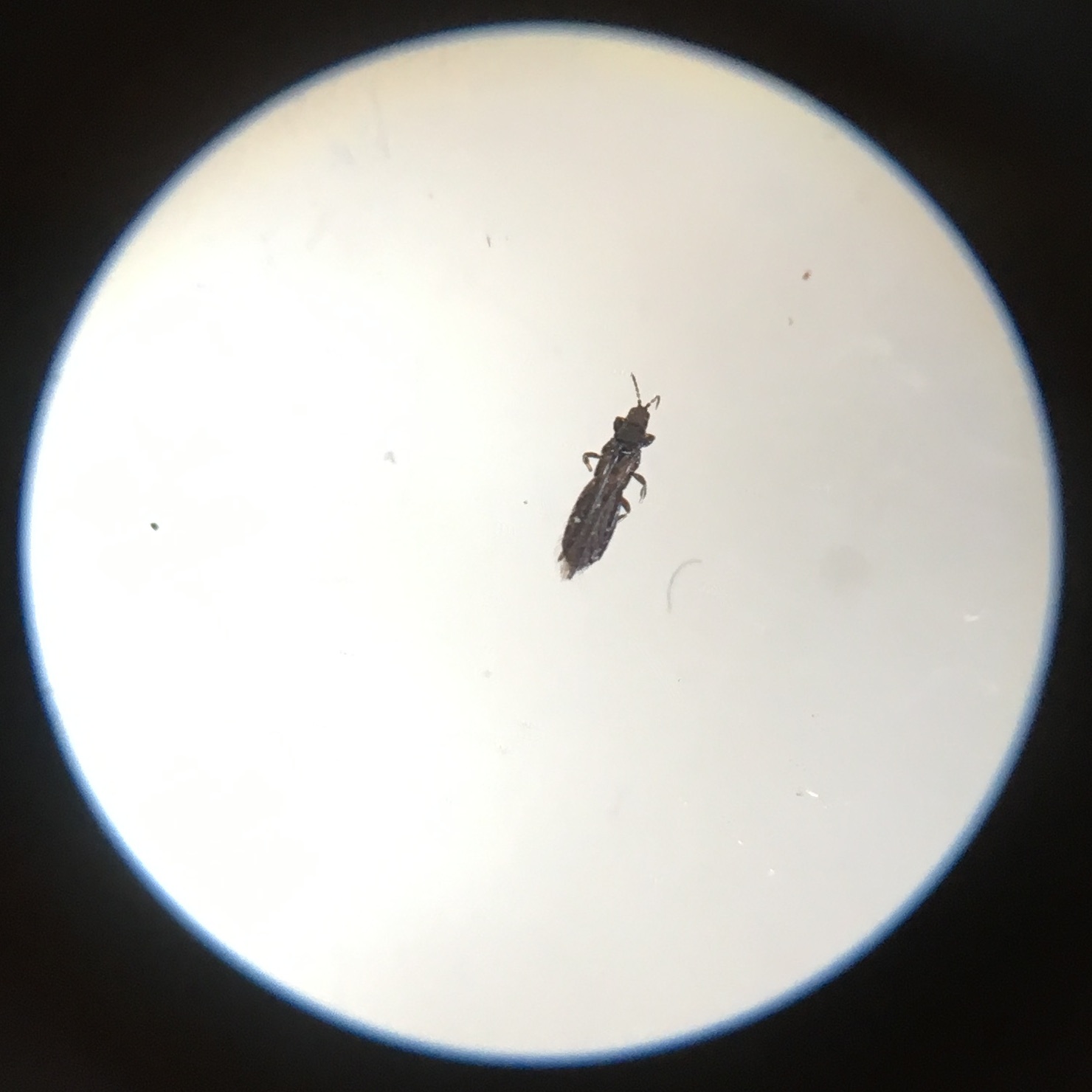I can’t help but think about thrips at this time of year. They seem to love my office. They crawl everywhere. I’m constantly swiping them off my face and arms, and they end up in drifts on my desk when they die.