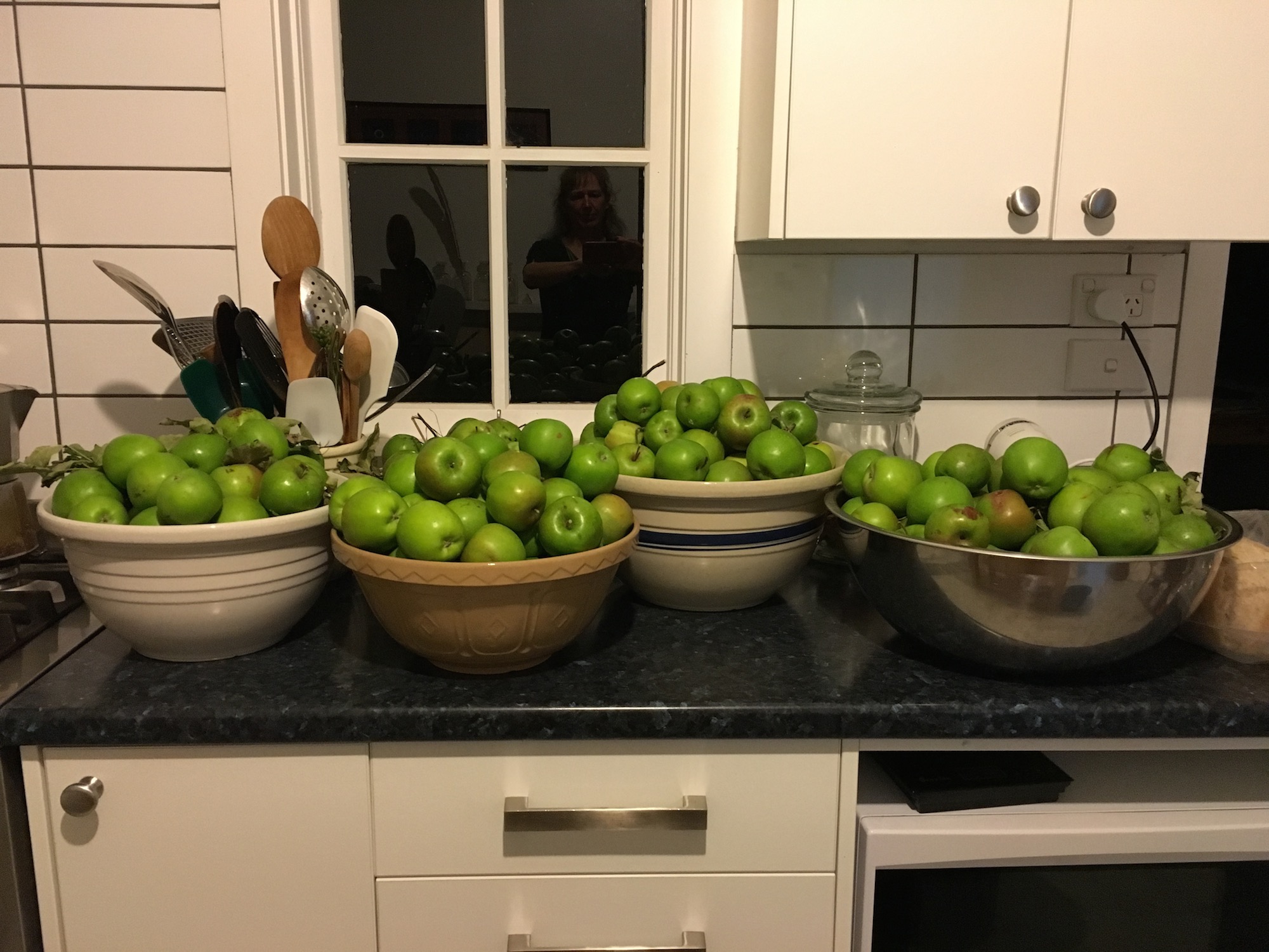 None are quite ripe, but we’ll make the best of them—applesauce and pie this weekend, for sure!