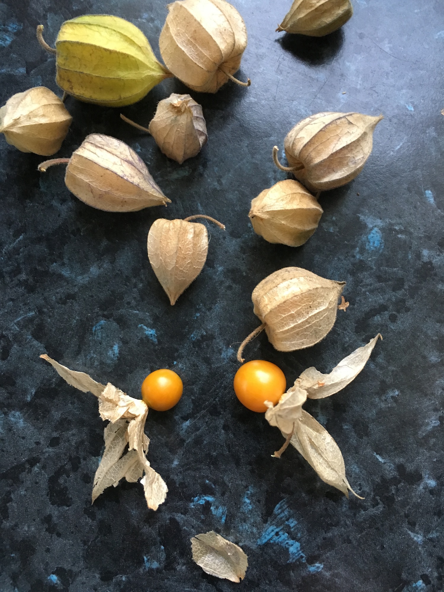 Cape gooseberries grow reasonably well here—some years they grow too well, actually. I’m still learning how to use them and how to enjoy their odd flavour. This year we got only a handful, as I wasn’t able to water them as much as they needed in this hot, dry summer.