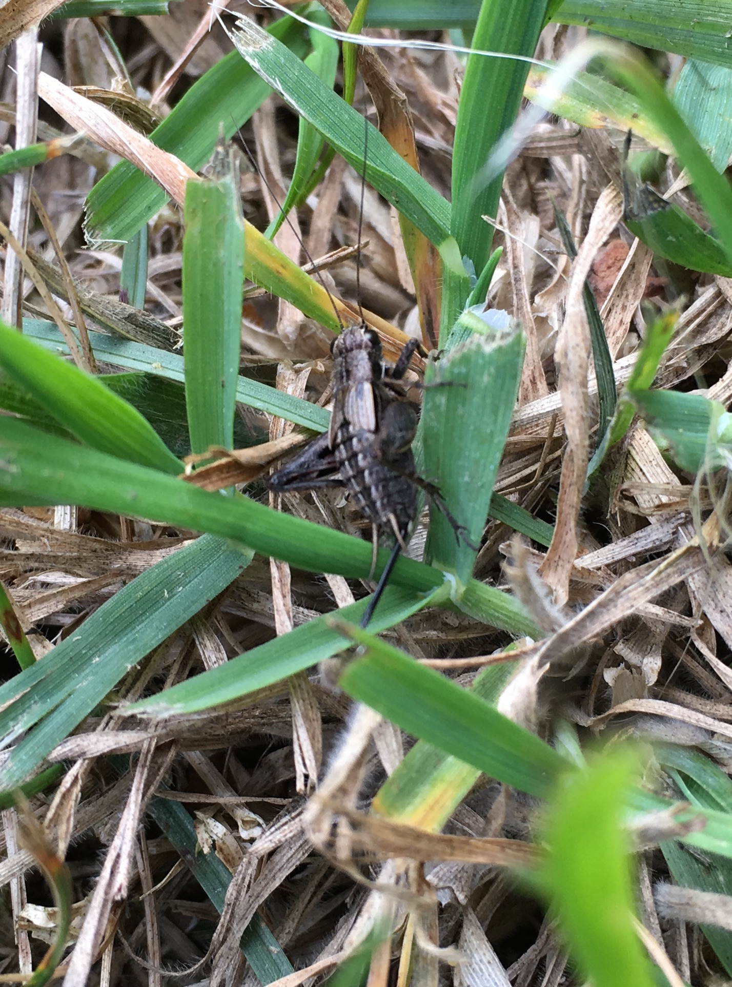 A female small field cricket–the long ovipositor (egg laying tube) at the rear tells you she’s a girl.