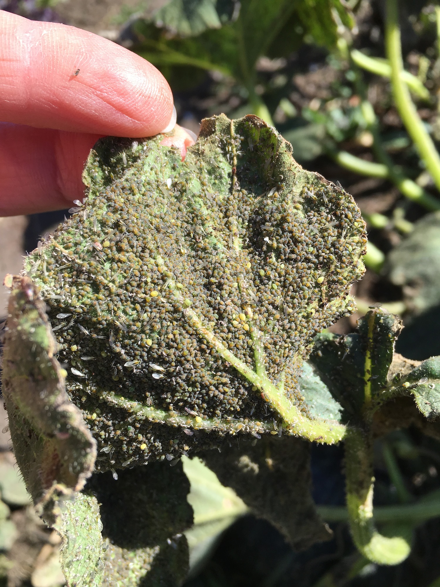 So when I went to harvest, it was a bit of a surprise to find millions of aphids on the underside of nearly every leaf in a back corner of the pumpkin patch.