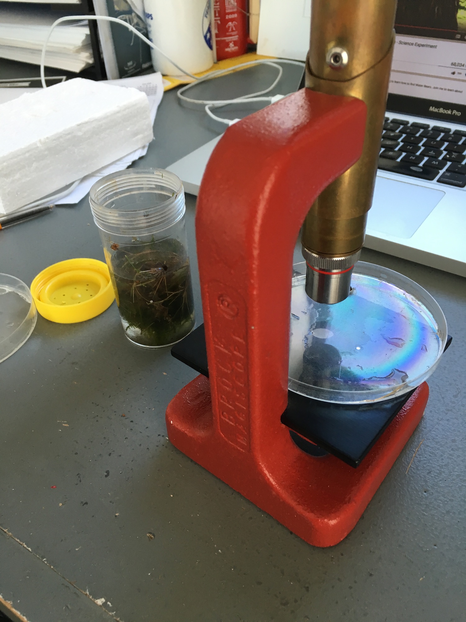I peered down the microscope until my eyes crossed. I squeezed out more water from my moss.