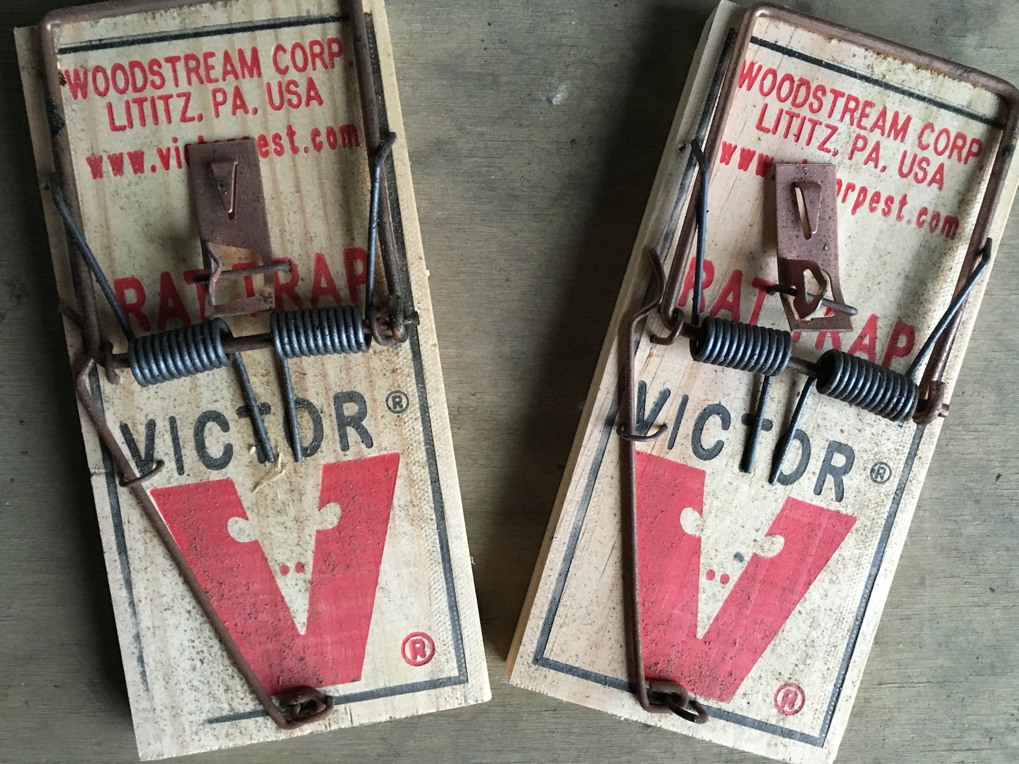 Then I pull the rat traps out and look at them for a while, screwing up my courage.