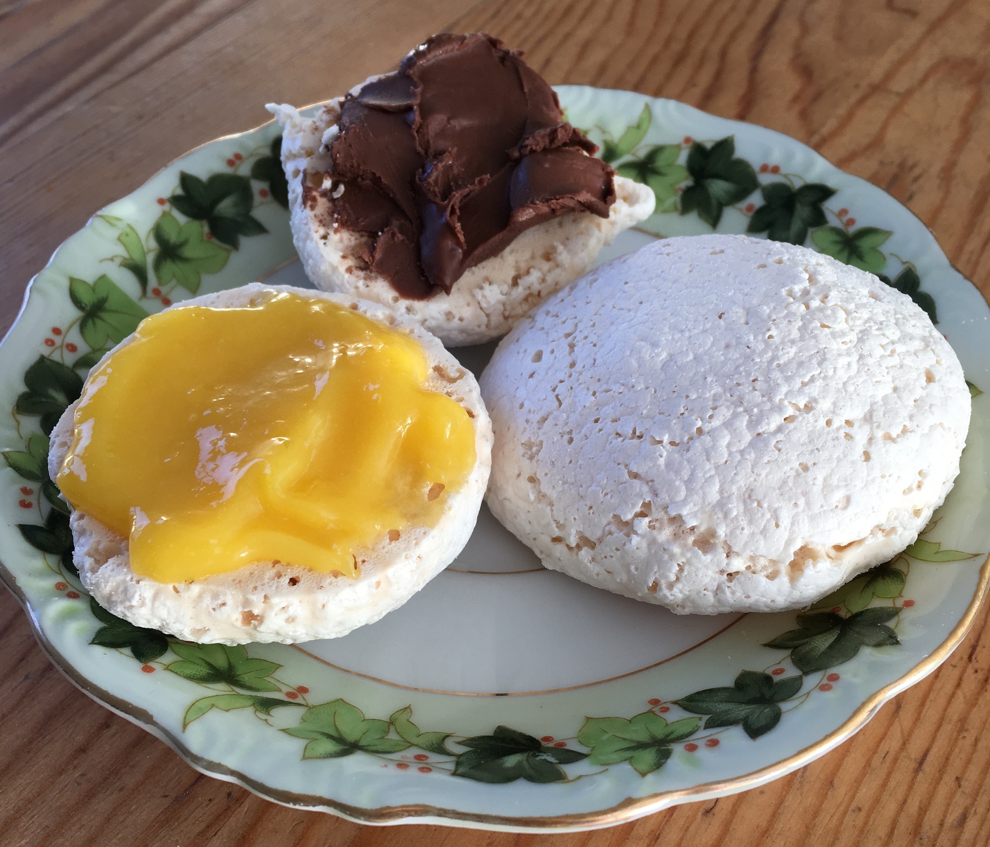 There is a slight beany aftertaste to them, but I prefer it to the eggy aftertaste of egg-based meringues. In fact, I dislike meringues as a rule, because of the egg flavour, so these were a real bonus for me. And spread them with lemon curd or Nutella, and that bean flavour is covered up nicely.