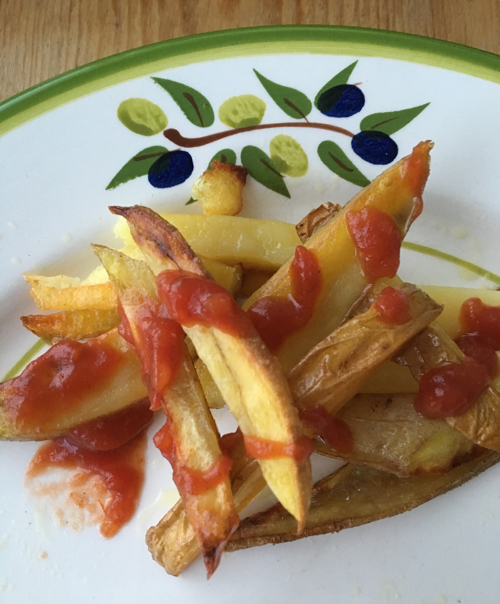 Well, you learn something new every day. Since then, I’ve made them several more times, “forgetting” to stir them, and tweaking the technique until I’ve got the best oven fries ever. Here it is…