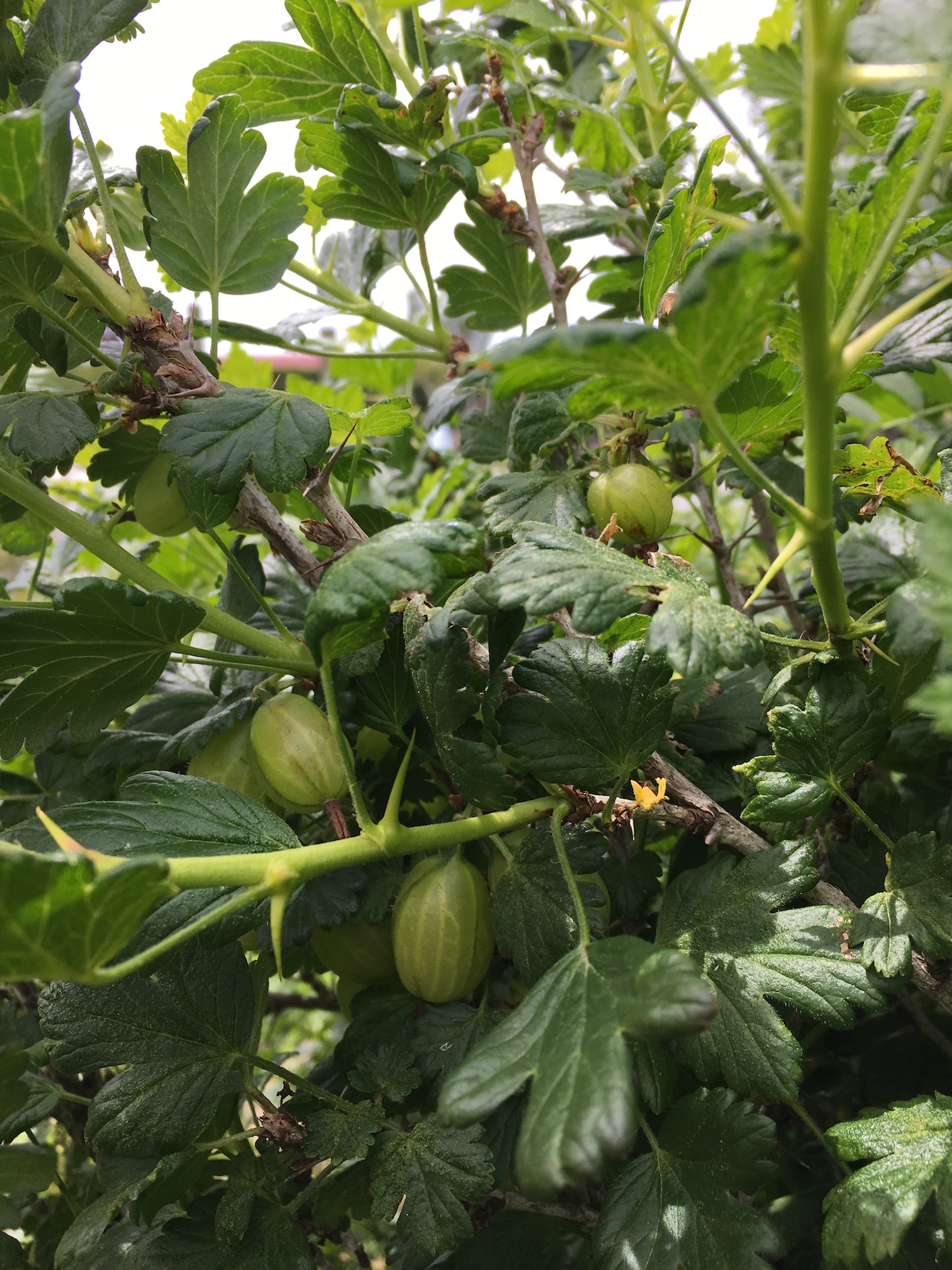I should probably prune the plants, so there’s more space to get in there and pick. But pruning brings its own blood price, and one of the things I like most about gooseberries is that they pretty much take care of themselves. They do well in dry conditions, and they compete well with the weeds. That they give us fruit without the fuss of pruning is a huge bonus.