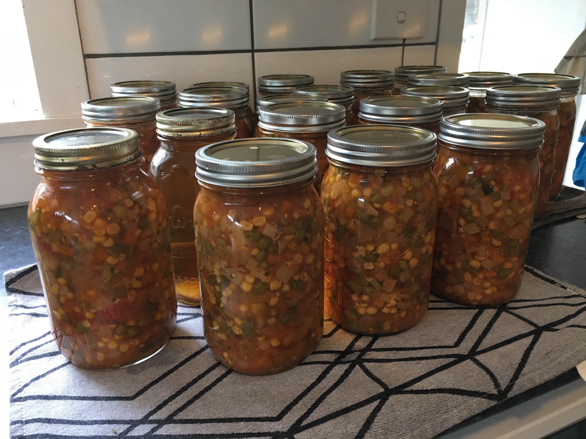 Not in sunburn or sand in my shorts, but in work. It was time to make our annual vat of summer soup, I was milking for the neighbour this weekend, and I had a weekend of cleaning and animal care to do–all in one day.