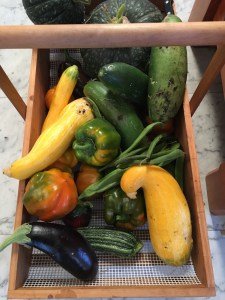 A frost will kill everything left in the summer garden, so I went on a rescue mission this evening. I gathered in everything that was still decent, whether it was fully ripe yet or not, assuming that anything left in the garden will be dead by morning.