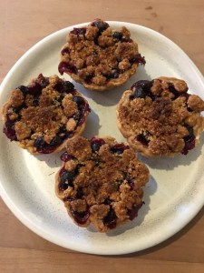 I’ve been celebrating the winter solstice in little ways all week–candles at dinner, an extra log on the fire, sunny-coloured food on dark plates…Yesterday I pulled out the last of the blackcurrants to make blackcurrant tarts for dessert.