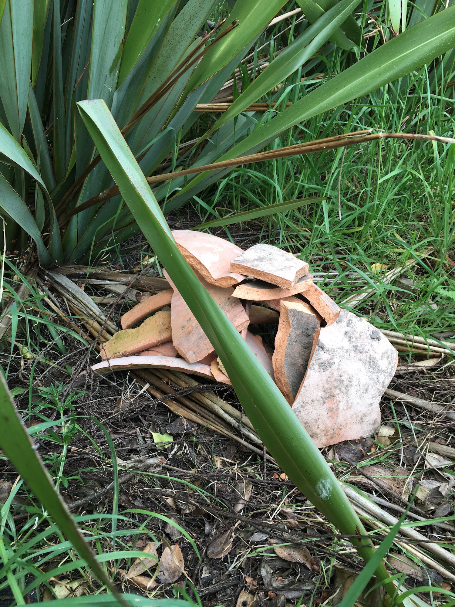 Habitat loss and predators are the main threats to skinks in New Zealand (though the common skink is not threatened, as many of our other lizards are). Skinks are preyed upon by cats, rats and stoats, all of which are plentiful around our place. We can’t eliminate all the predators, but we can provide plenty of hiding spots for the skinks. Dense native grasses, rocks, and even broken flower pots all provide shelter for skinks. The rocks and flower pots also make nice sunning spots.