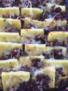 On this visit, dinner included a beautiful polenta ‘lasagna’–layers of herb-filled polenta and thick lentil stew rich in mushrooms and spinach generously topped with cheese and baked to perfection. The portions were generous, and the side salad was the perfect foil to the hearty lasagna. The meal was accompanied by an excellent New Zealand Merlot.