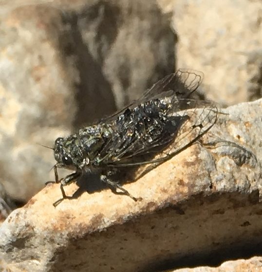 The main cicada season doesn’t really start until the chorus cicadas (Amphisalta zealandica) come out after Christmas, but two weeks ago, we found a few chirping cicadas (Amphisalta strepitans) on the rocks around Okains Bay.