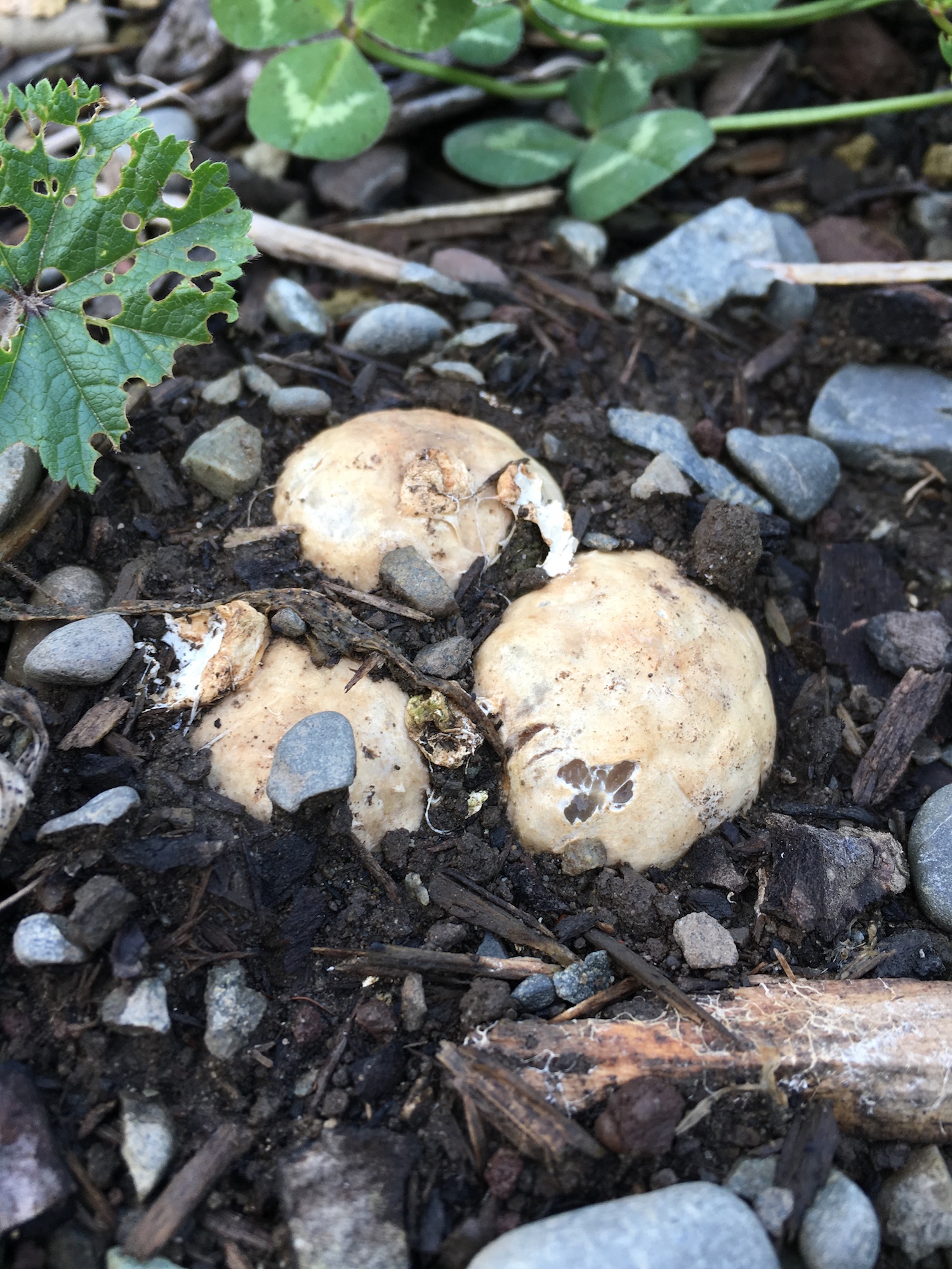 One of my favourite fungi is Ileodictyon cibarium, the basket fungus, native to Australia, New Zealand and Chile. We have been treated this year to an amazing display of these fungi in our recently wood-chipped pond garden. Usually we don’t notice them until the fruiting bodies are fully formed, but because there are so many this year, we’ve been able to watch their whole emergence, from egg-like volva to lacy soccer ball.