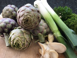 Garden excess comes early, in the form of artichokes and asparagus. Add in some home grown oyster mushrooms, spinach, leeks and herbs, and I begin to feel like we have unlimited wealth. Like we’re in the ‘one percent’.