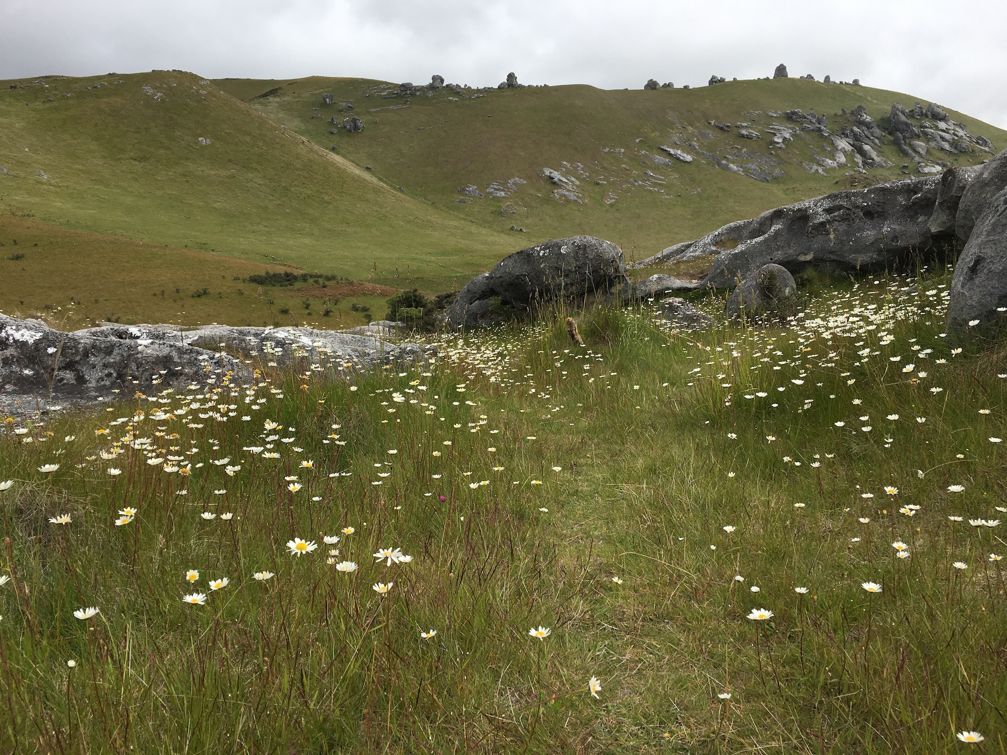 We hiked up from Porter’s Pass to Castle Hill Peak (1078 metres higher than Castle Hill, and a serious slog on unrelenting scree), from which all of Kura Tawhiti looks like a little bump on the valley floor below. It was interesting to see what I think of as a large part of the landscape put into perspective. And it was a great reminder of just how many places there are to explore, big and small—it’s a great wide world out there!