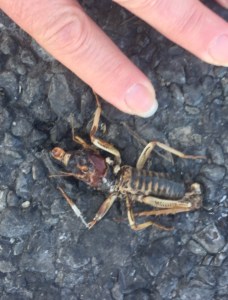 But not long ago, on an evening walk with my husband, we found an adult tree wētā dead on the road.
