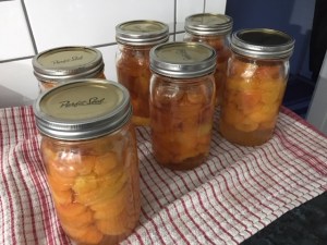 Back inside, water, jars, and sugar syrup were cooling, but I finished packing the apricots in and poured sugar syrup over them …