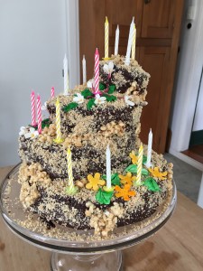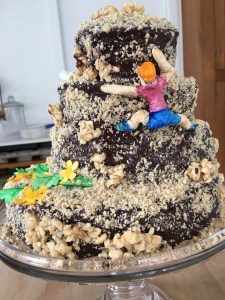 It’s birthday cake season again! This year, my daughter’s brief for me was a Kura Tawhiti bouldering theme, with ‘maybe a climber and some alpine plants’ done in chocolate and hazelnut flavours.