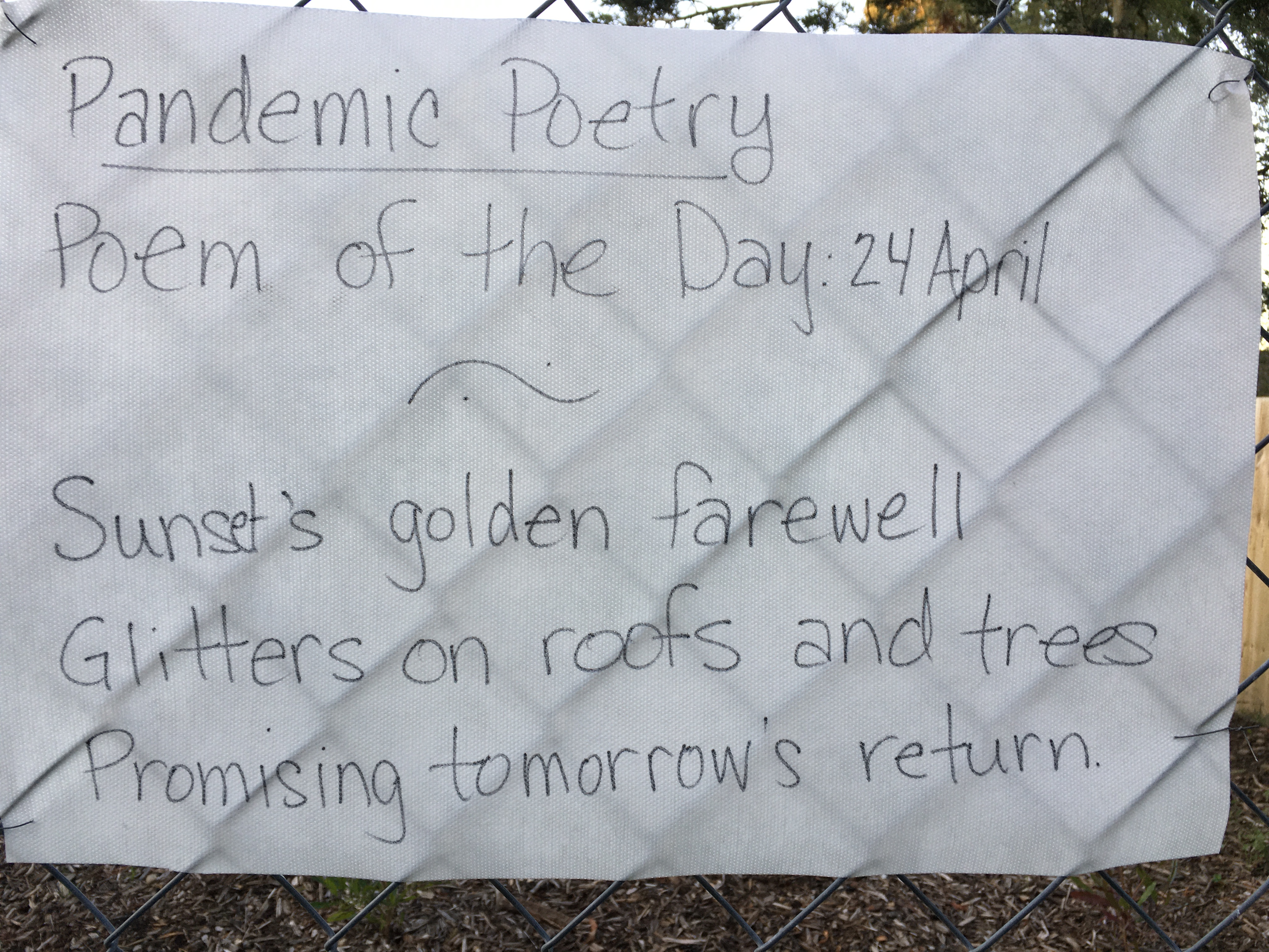 Pandemic Poetry: Poem of the Day, 24 April 2020 April 24, 2020 / Robinne Weiss Yesterday was overcast, but the sun peeked out just before it set. Discover more from Robinne Weiss Subscribe to get the latest posts sent to your email. Type your email… Subscribe Share this: Click to share on X (Opens in new window) X Click to share on Facebook (Opens in new window) Facebook Click to email a link to a friend (Opens in new window) Email Click to share on Pinterest (Opens in new window) Pinterest Click to share on LinkedIn (Opens in new window) LinkedIn Click to share on Reddit (Opens in new window) Reddit Click to share on Tumblr (Opens in new window) Tumblr Like Loading... Related