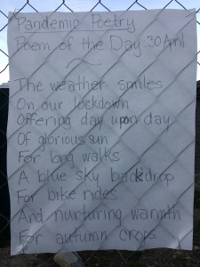 We woke this morning to a warm breeze and it struck me yet again how fortunate we’ve been that the weather has been warmer and drier than usual for autumn. Here’s hoping it continues for a while longer–it makes everything more bearable.