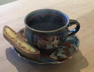 So on this rainy morning, with a day of intense work on the next novel ahead of me (and no sunny-day excuses to get me out of it), I thought I needed a little motivation in the form of a special vessel for my coffee. A tiny thing, but it has made my day sunny, despite the rain outside.