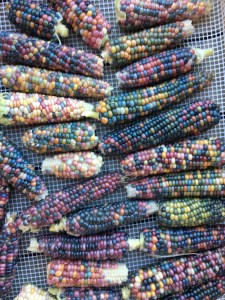 I don’t know how they will do as popcorn—they still need to dry more before we can use them—but even if they don’t pop, they were worth growing, just for their stunning look. And I have no doubt we can grind them up into some excellent confetti-coloured cornmeal if they don’t pop well.