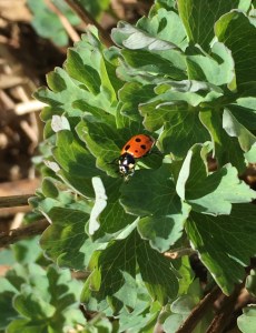 The bumble bees and honey bees are blundering around in dandelion blossoms, the ladybugs are out and about, and I’m keeping an eye on a preying mantis egg case which should hatch before too long.