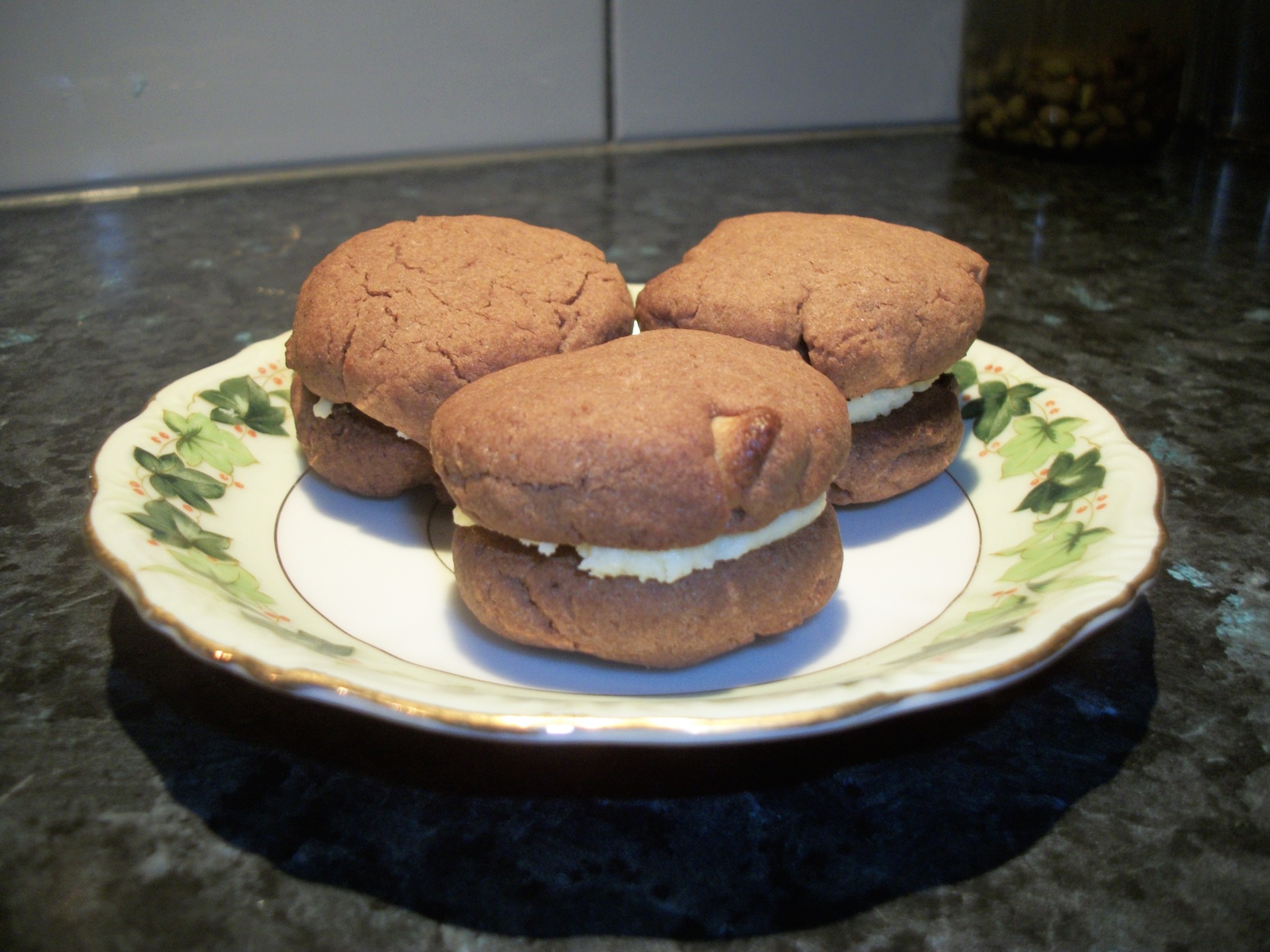 When the cookies are cool, sandwich them together with frosting (I used cream cheese frosting left over from last week’s cupcakes).