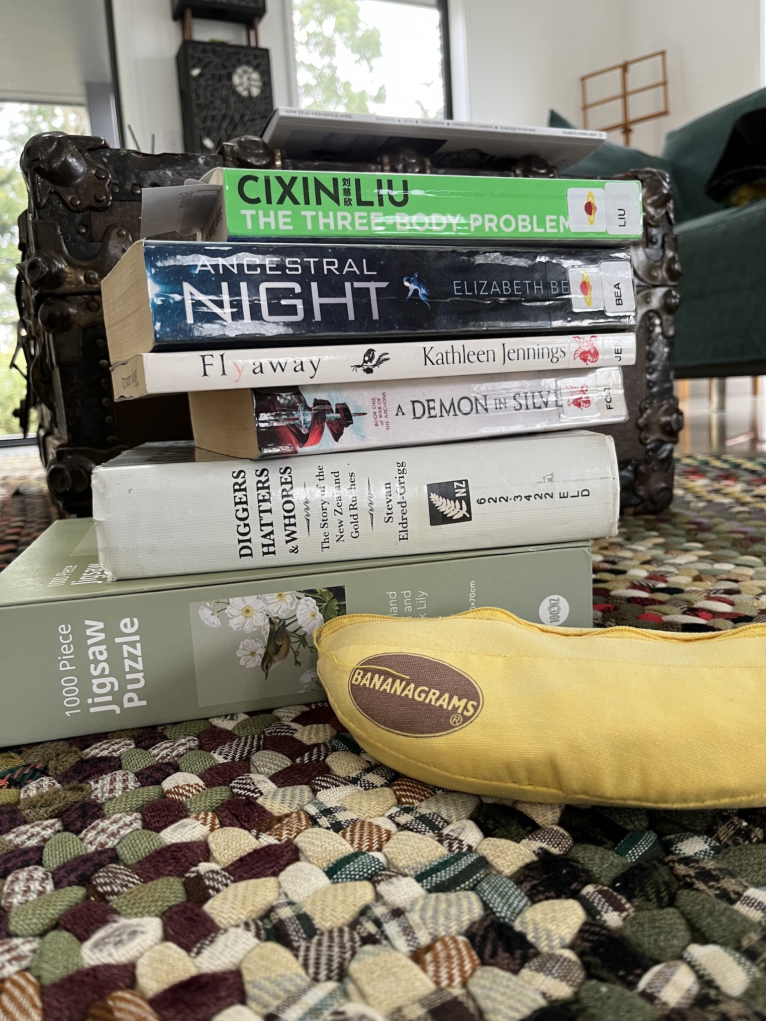Then, while I was out and about this morning, I stopped by the library. I checked out an armload of books, and also a jigsaw puzzle. Books are fantastic, but I do need the brain rest that those games on the phone or scrolling social media provide. Jigsaw puzzles will serve the same purpose, with the bonus that a jigsaw comes without advertisements and auto-play videos, and invites others to join in the fun.