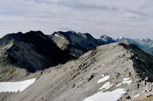 Leaving the mice behind in sparkling sunshine the next morning, we followed Robert Ridge to Angelus Hut. Well above tree line, the ridge is one continuous spectacular view of the mountains and lakes in and around the park. We were prepared for wind and cold (it had snowed on the ridge the day before), but enjoyed sun all day with very little wind. My favourite part of the ridge was the profusion of vegetable sheep—some of the most spectacular specimens I’ve ever seen.