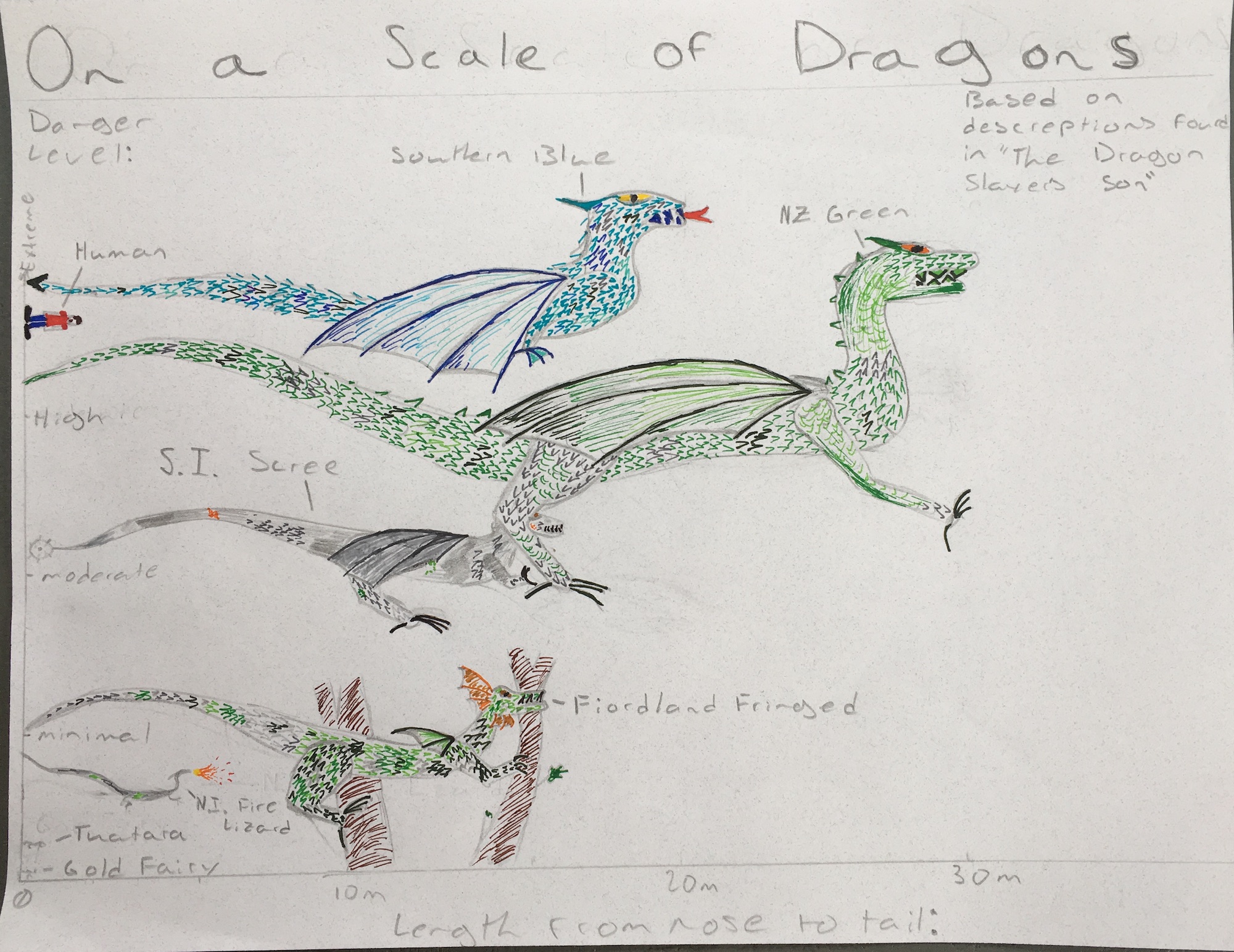 In case you’ve been wondering, my son has created this handy guide to the dangerousness of New Zealand dragons. This should come in handy, if you are ever faced with these creatures on your travels.