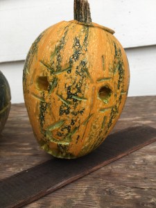 We’ve just brought in the last of the harvest–pumpkins, apples, popcorn. The only summer crops left are those in the greenhouse, and they won’t be around much longer, either. Trees are losing their leaves. We’ve brought out the candles, and dream of sitting by a crackling fire in the coming months. Clearly, painted eggs, bunnies, and spring flowers are inappropriate.