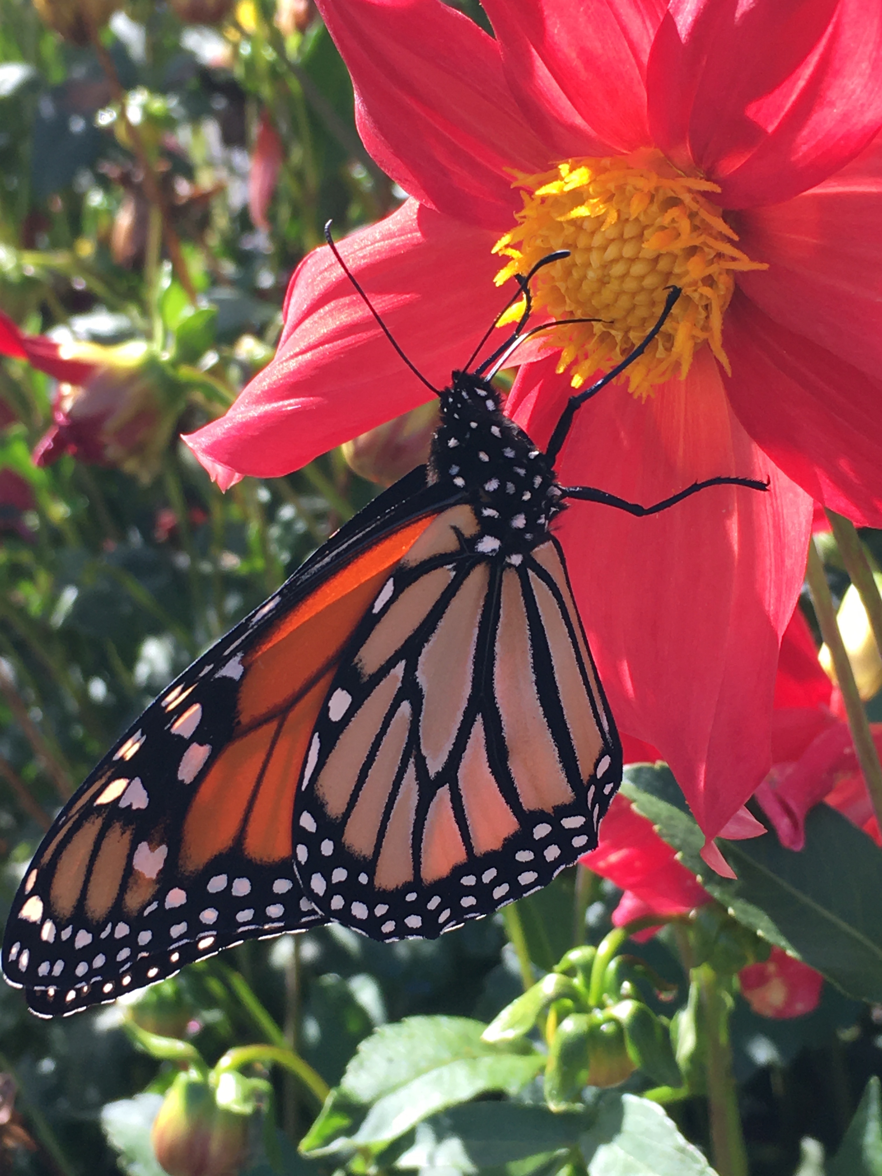 Invertebrate life on the property has increased with the growth of our gardens. Our lush akeake attract katydids, the herb garden is alive with butterflies, native bees, and hover flies. Preying mantids stalk the flowers, snatching up prey. Jumping spiders of several species prowl among the foliage and rocks. And web-building spiders festoon the branches of nearly every plant.