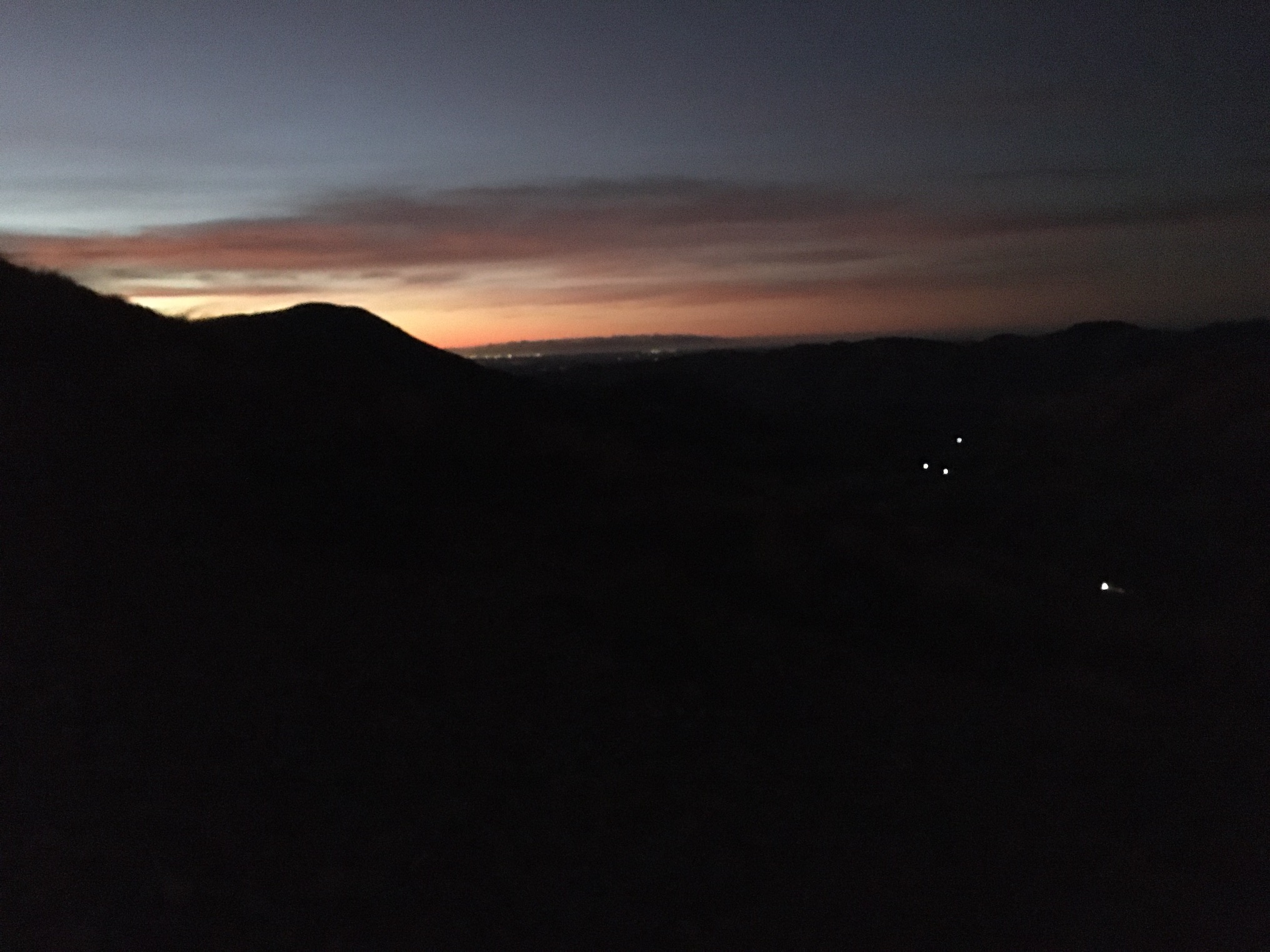 But the wind grew more fierce the further up I went. I stopped frequently to enjoy the beauty of dawn in the mountains, to gaze back at the bright smudges of towns dotting the plains, the pinpricks of light from the cars crawling up the mountain to Porters Pass. I never stopped for long, though.