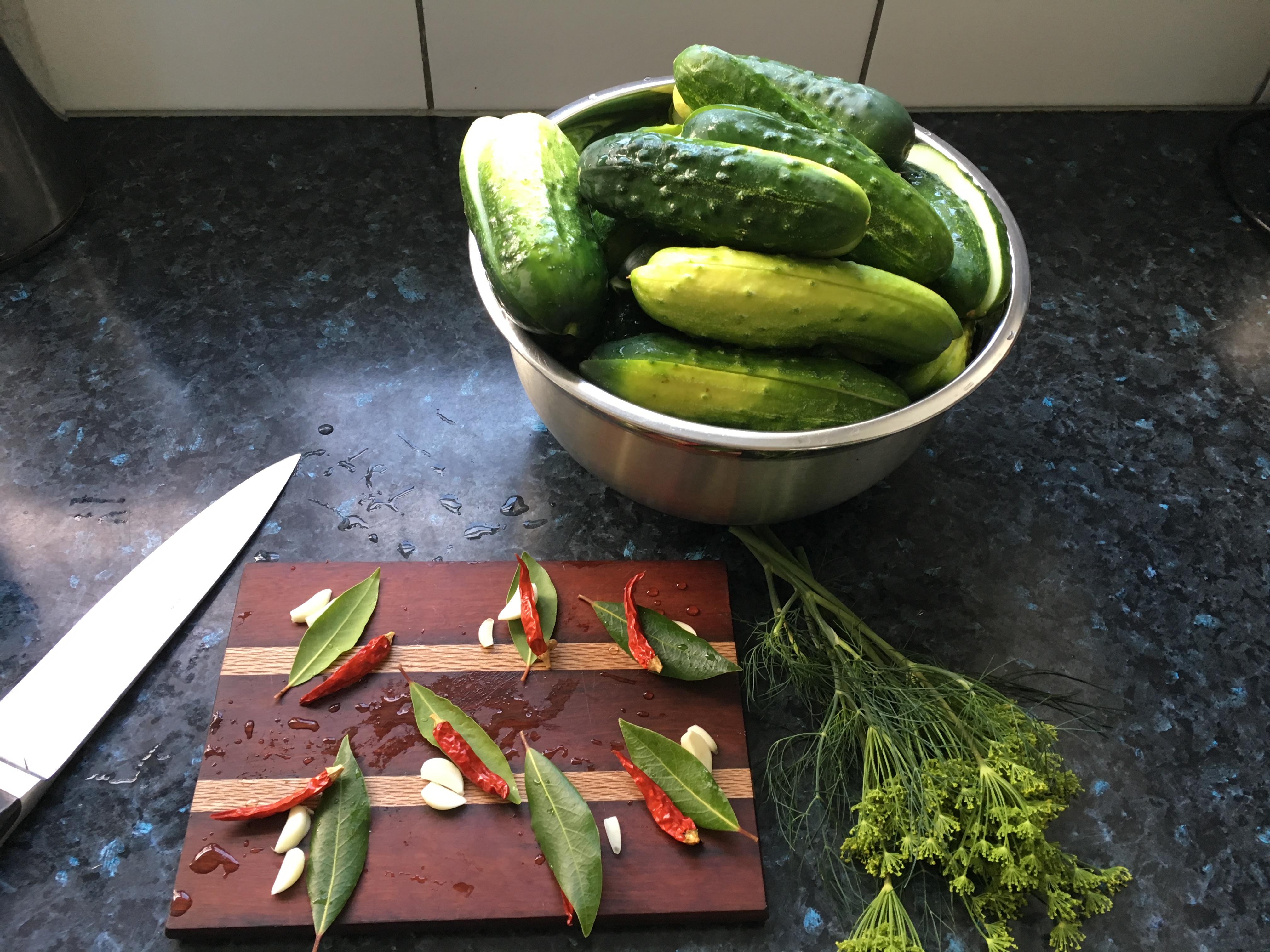 1 kg pickling cucumbers, washed and cut in half lengthwise