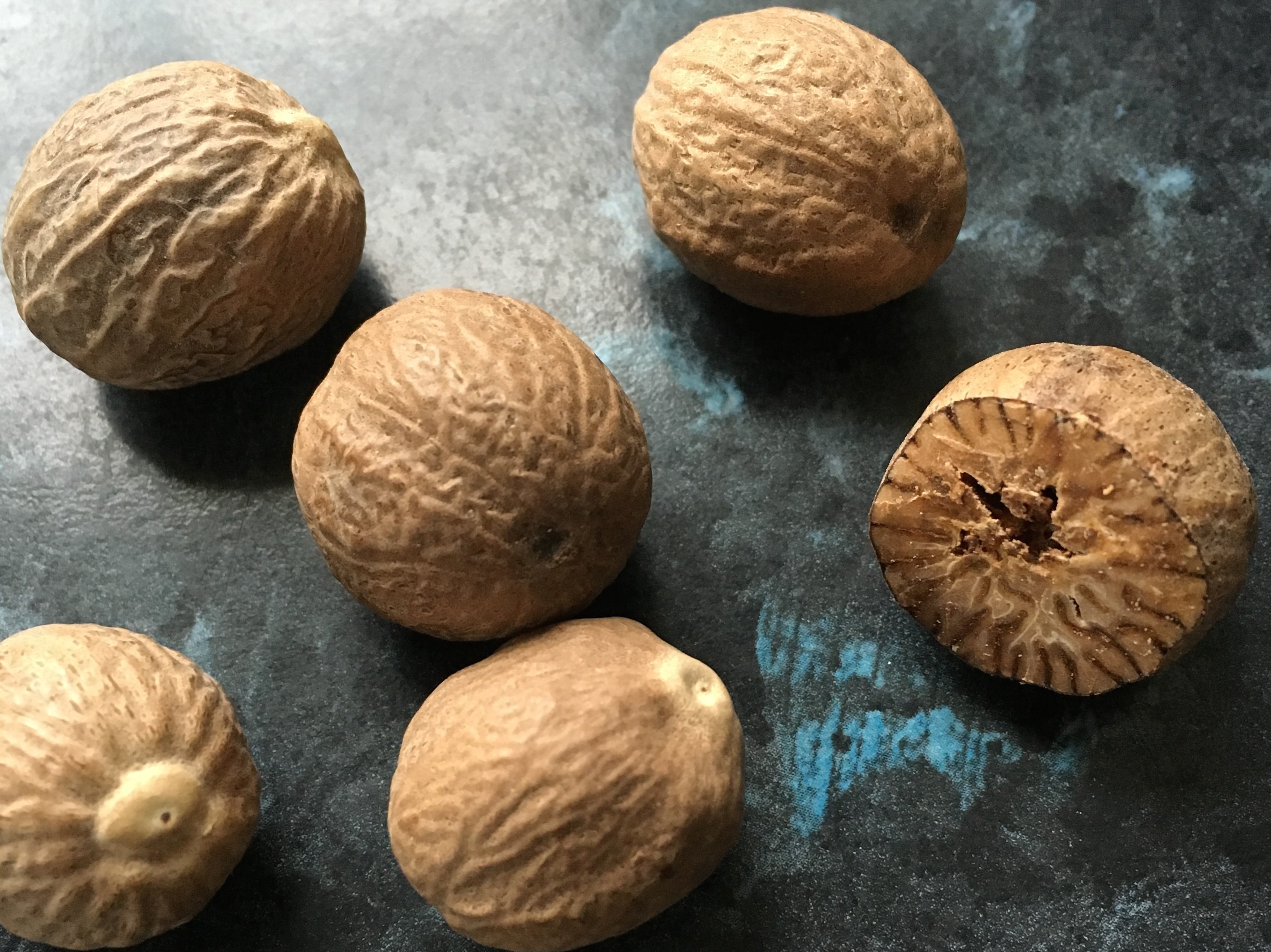 It’s only fair, I suppose, that nutmeg is hard to find here. It grows only in the tropics, and whole nutmegs don’t fit well into the little commercial spice jars.