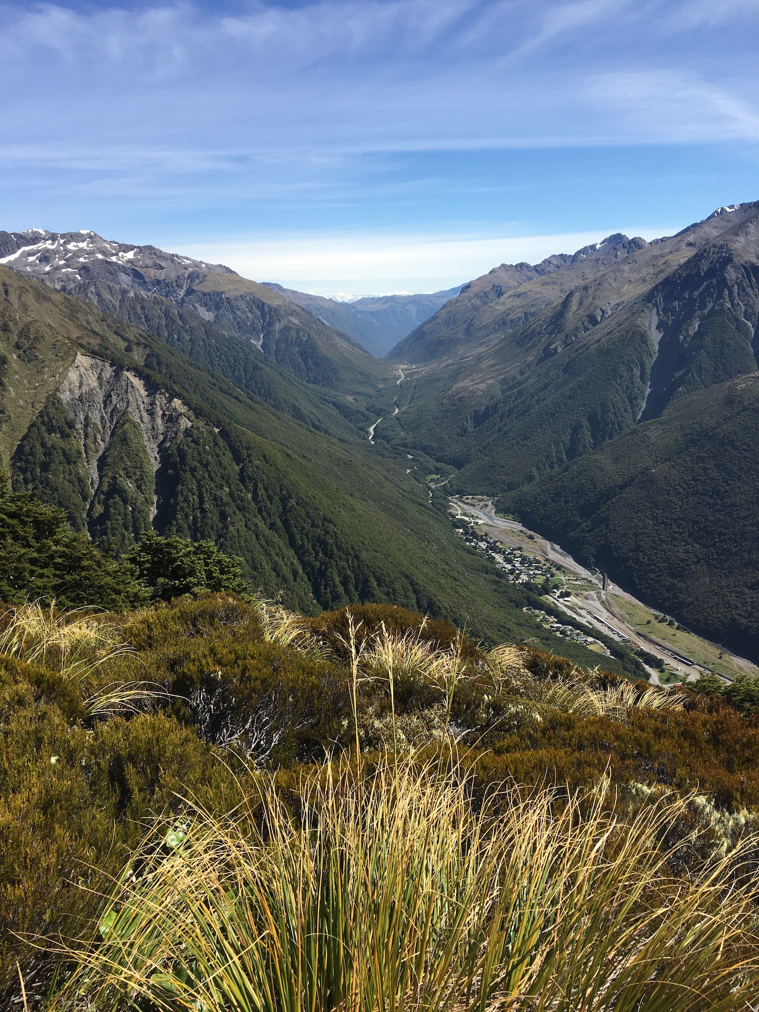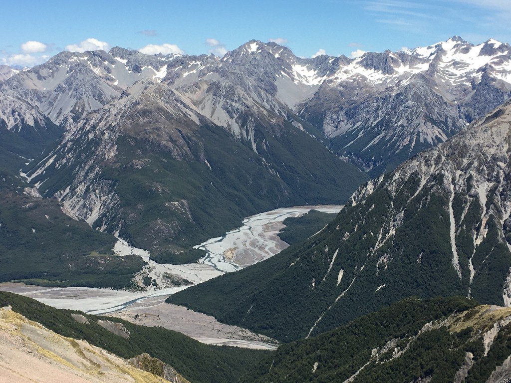 Last weekend, my husband and I got out for a tramping trip in the Two Thumb Range, in Te Kahui Kaupeka Conservation Park. We parked on Rangitata Gorge Road at Forest Stream, then slogged two hours up the road to Bush Stream—not a very exciting start, but better then than at the end of the tramp. We followed Bush Stream Track up the stream to Crooked Spur Hut. The stream flows through some pretty spectacular scenery, and you ‘get’ to cross the stream quite a few times before a steep climb to the hut.